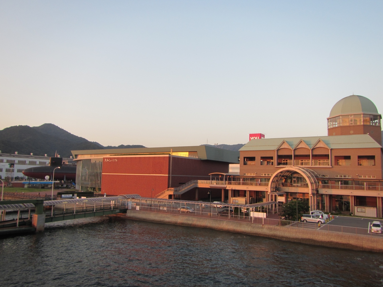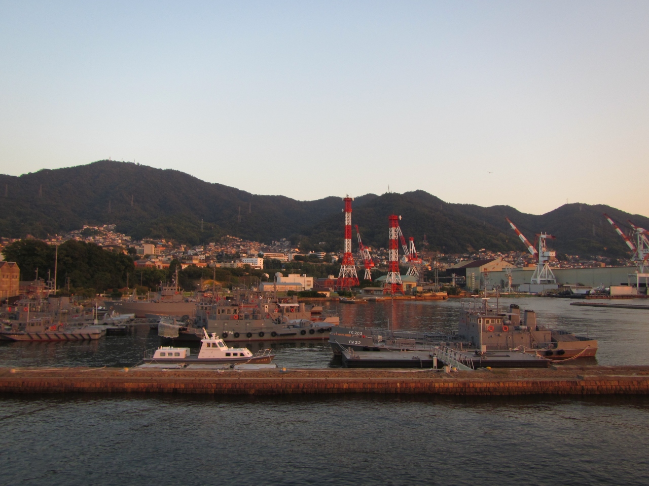 松山港から呉港までフェリーで行きました。まずは、圧倒的な製鉄所のプラント群に驚きです。それから、呉港の沖に、何隻もの自衛隊艦船が停泊しています。それから左右の埠頭にも、大小の自衛隊艦船が停泊していました。陸に上がれば、大和ミュージアムが落とせないポイントです。