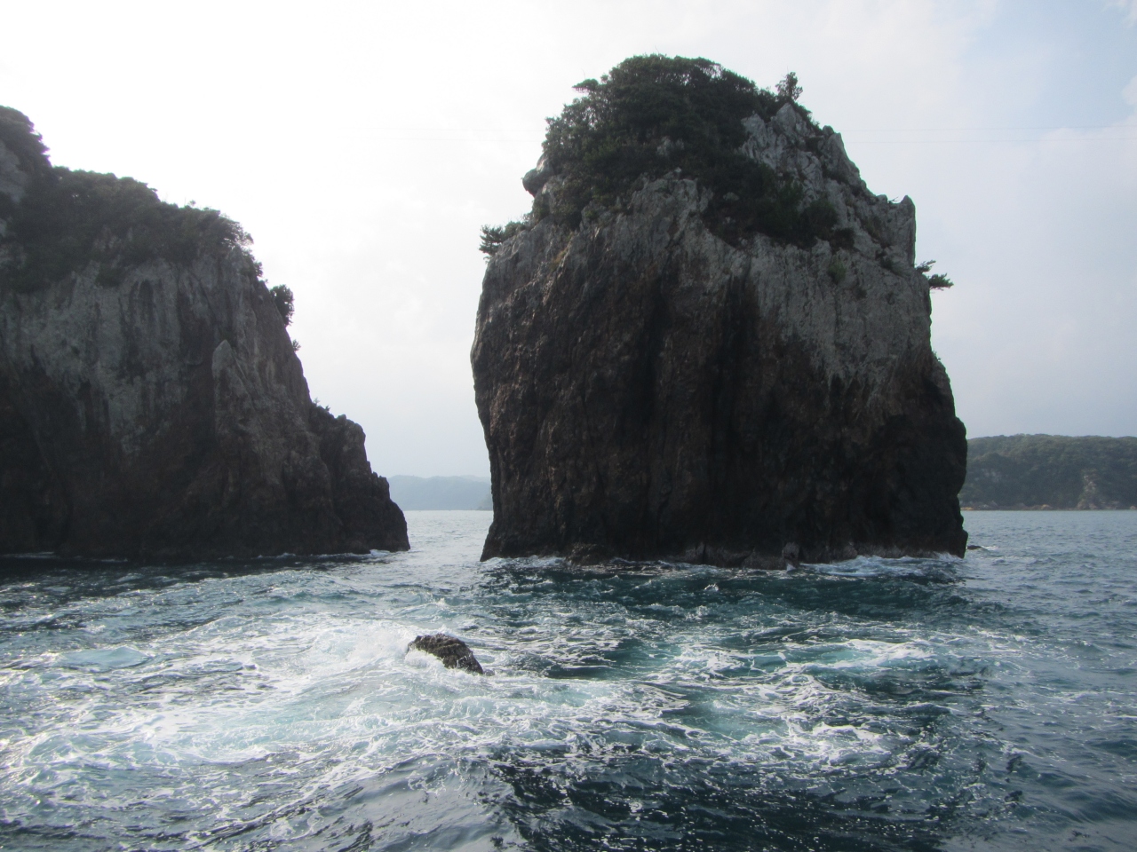 泊まったホテルに割引券が置いてありました。ホームページにも割引券がありましたが、それよりも安かったです。これは、要チェックです。太平洋に出るので、気象条件によって運航本数とかが変わってきますので、前日に問い合わせた方が確実です。私が行った時は、風も無かったのですが、波があると言う事で、太地くじら浜公園に行くコースは無く、すべて40分の島巡りコースでした。港の中は、静かなものでしたが、港から太平洋に出ると、大揺れになりました。松島の島の狭い間を通り抜けるのがスリル満点でした。景気も抜群です。