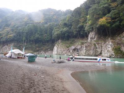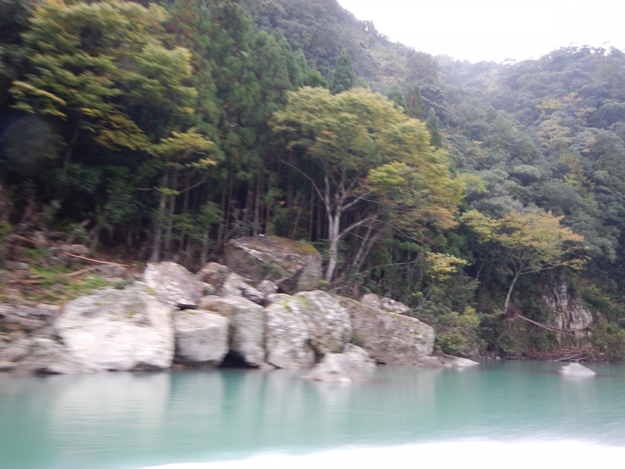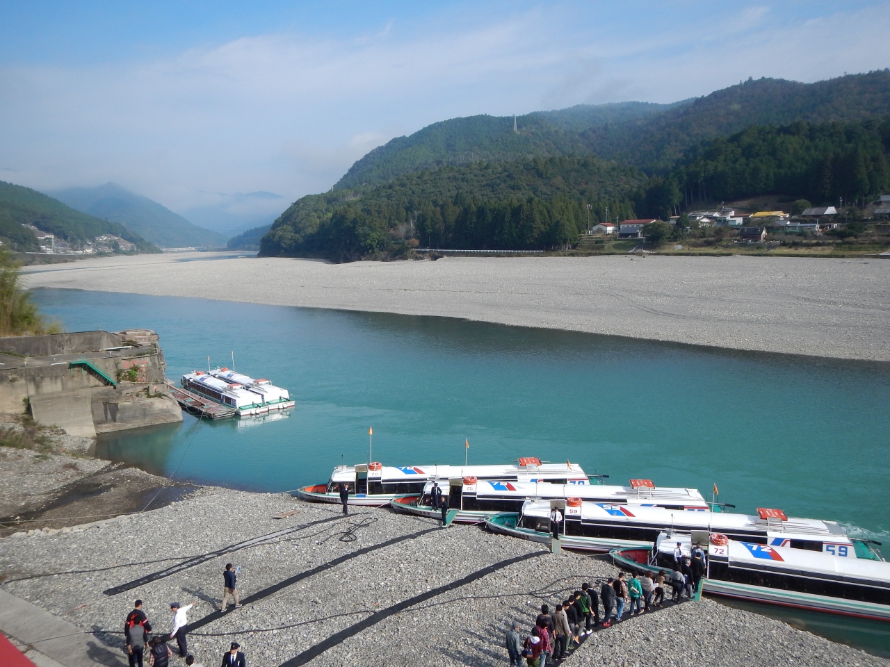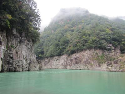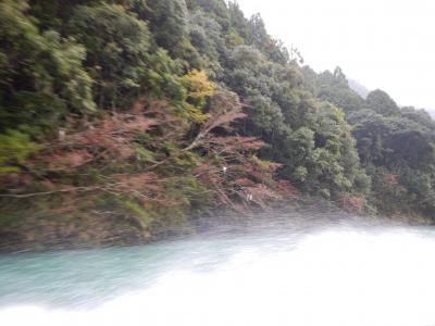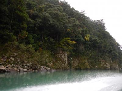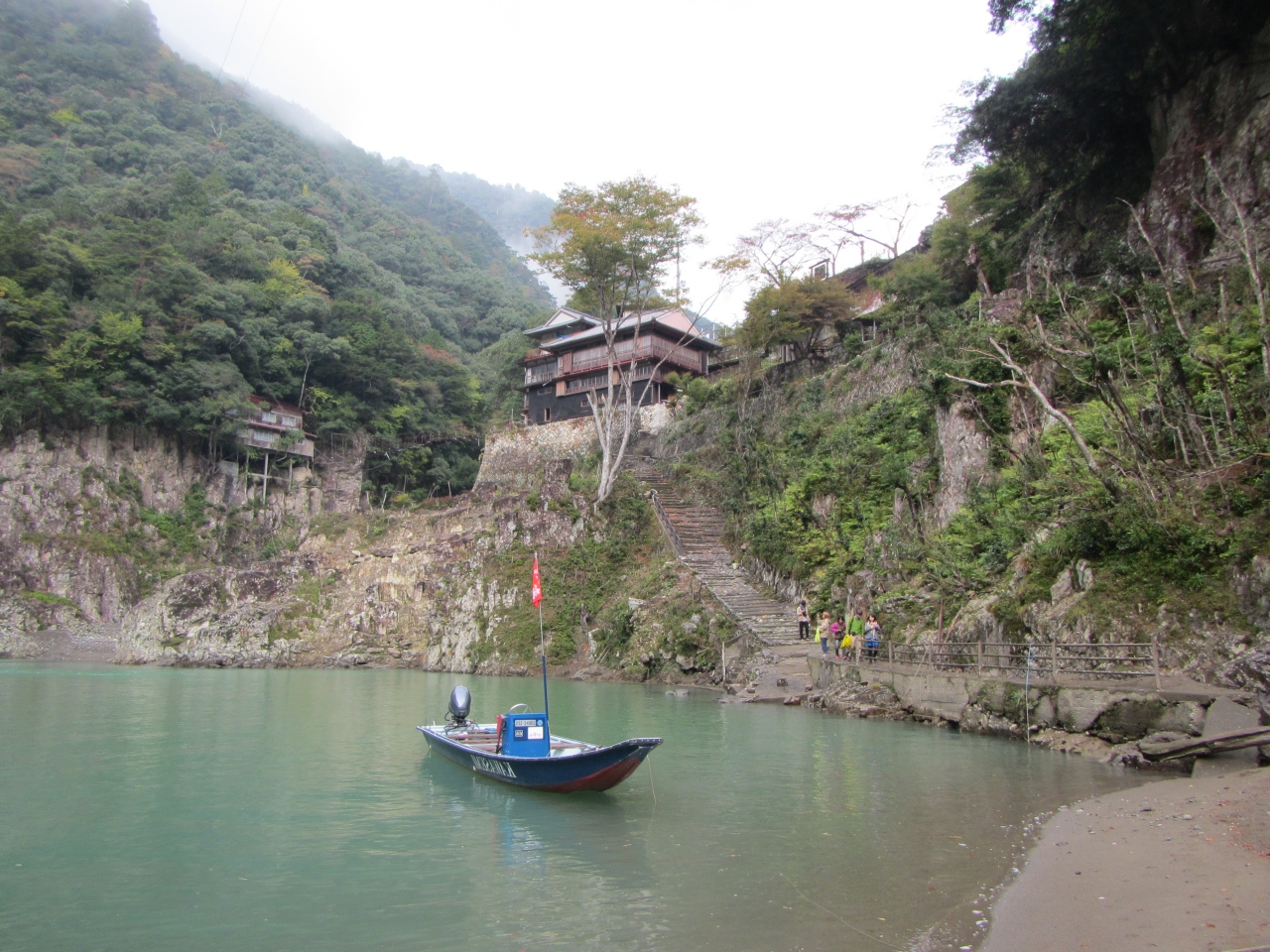 新宮から熊野川をあがった志古にウォータージェット船の発着場があります。ここからウォータージェット船に乗って観光するというのが、瀞峡観光の一般コースです。紀伊勝浦駅・新宮駅からバス+ウォータージェット船の割引切符が熊野交通でありました。ウォータージェット船で途中休憩するところに瀞ホテルの建物がありますが、水害の影響もあって今(2013年11月)は営業していませんでした。