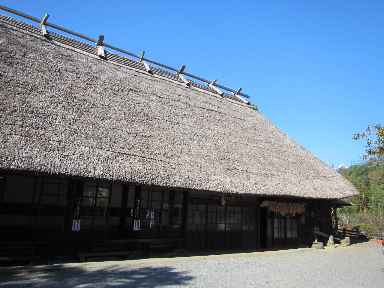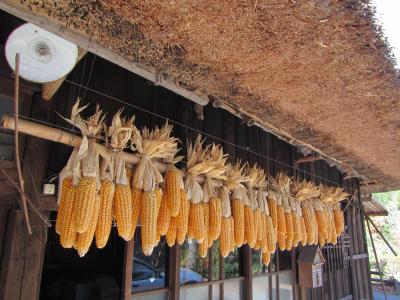 築260年以上の民家を移築した食事処です。雰囲気は抜群です。観光バスツアーのランチで行きました。料理の説明とかも有り、気に入ったら売店で買うことも出来ます。茅葺き屋根の農家を復元し、内部に昔の農機具などを展示した資料蔵がありました。地場産のお土産処もあります。