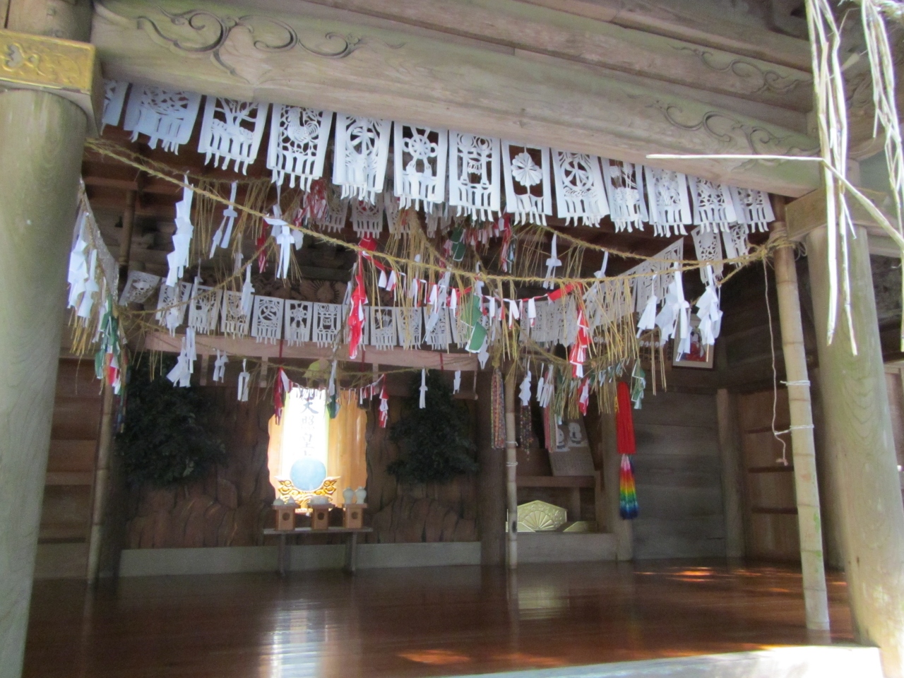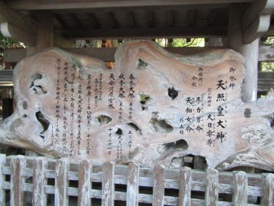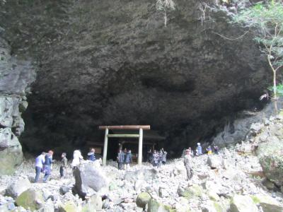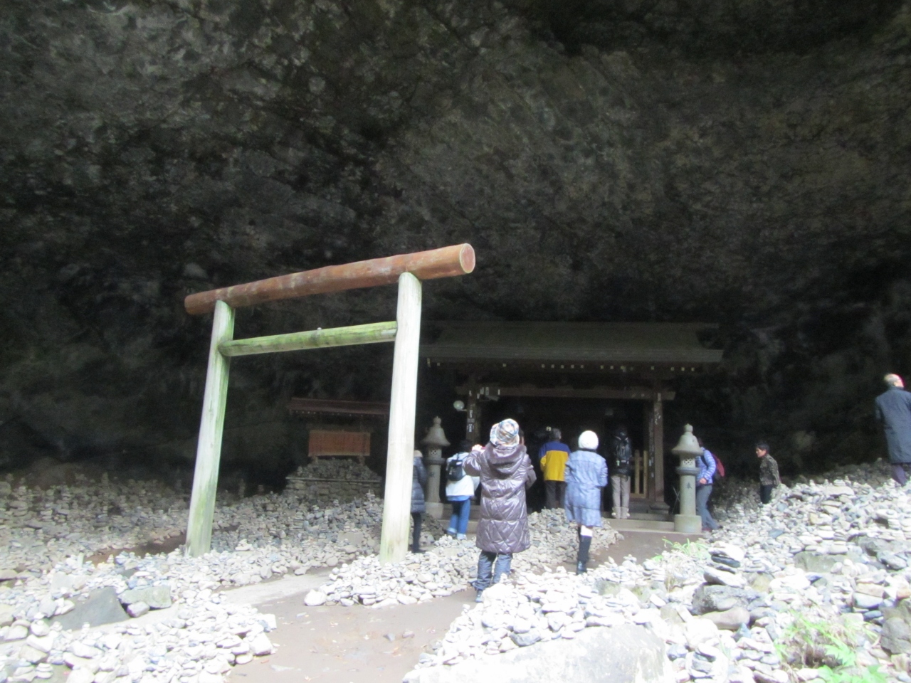 天岩戸と言われているところが川の対岸にあり、申し込めば、神職さんの案内で、遙拝することが出来ます。天岩戸部分の撮影は禁止されています。入り込んだ崖という感じの所が天岩戸という説明でした。境内には、さざれ石や芭蕉句碑などもありました。