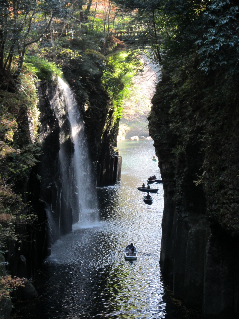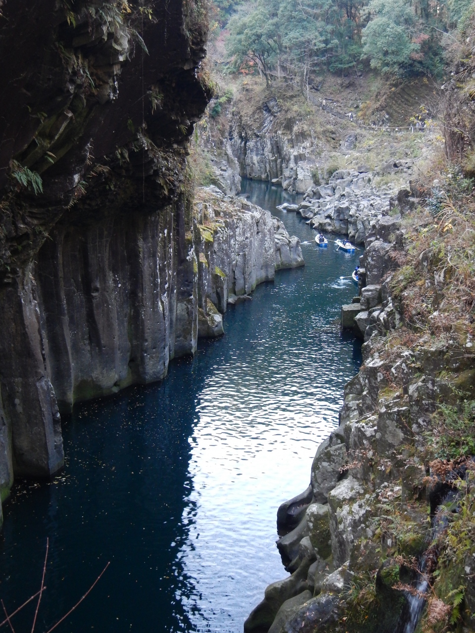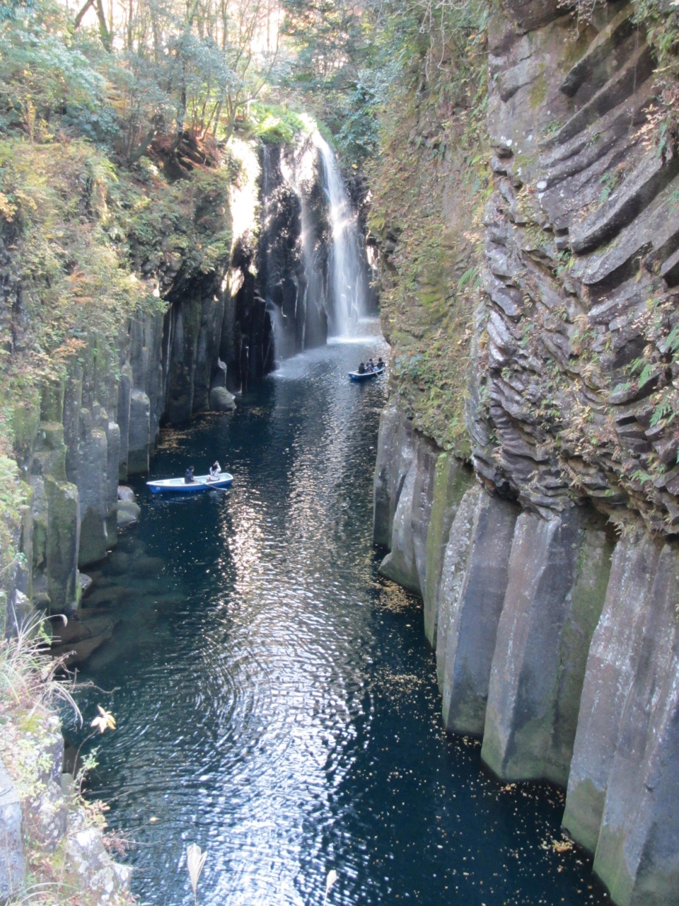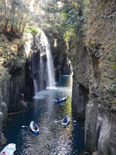 観光バスで行きました。高千穂大橋の上流にある観光バス専用駐車場に駐車。そこで昼食後、高千穂峡散策でした。高千穂峡に沿って、下り坂を下りていき、淡水魚水族館の前でマイクロバスに乗り、元の駐車場に戻りました。これだと往復する必要が無い、かつ下りのみですので楽ちんでした。マイカーや公共交通機関利用の場合は、こういう風にはいきません。