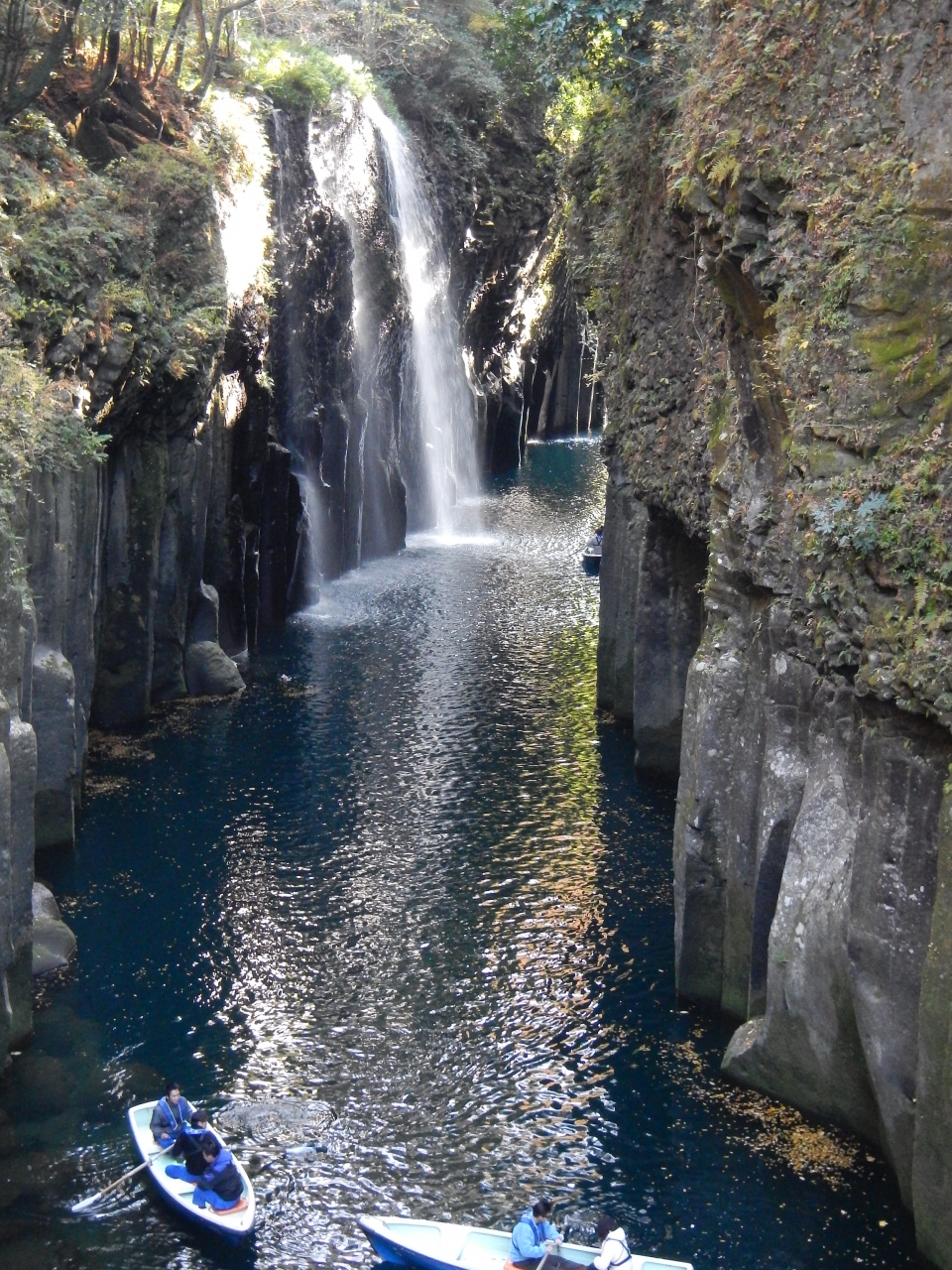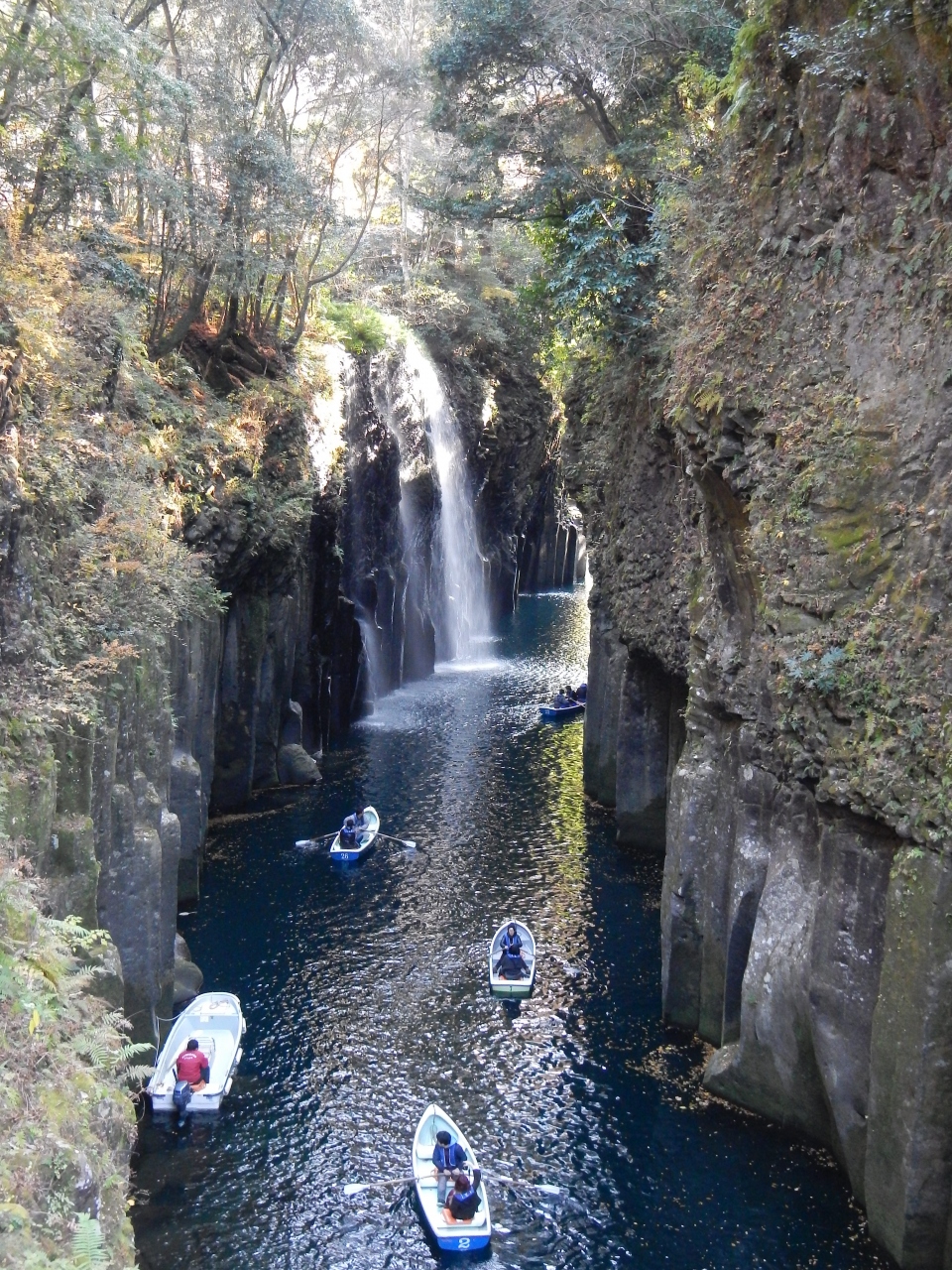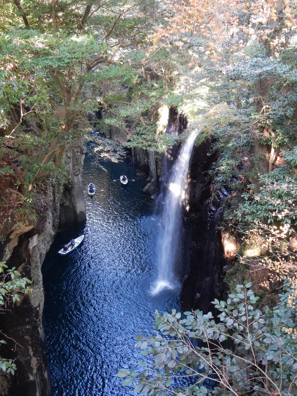 観光バスで行きました。高千穂大橋の上流にある観光バス専用駐車場に駐車。そこで昼食後、高千穂峡散策でした。高千穂峡に沿って、下り坂を下りていき、淡水魚水族館の前でマイクロバスに乗り、元の駐車場に戻りました。これだと往復する必要が無い、かつ下りのみですので楽ちんでした。マイカーや公共交通機関利用の場合は、こういう風にはいきません。