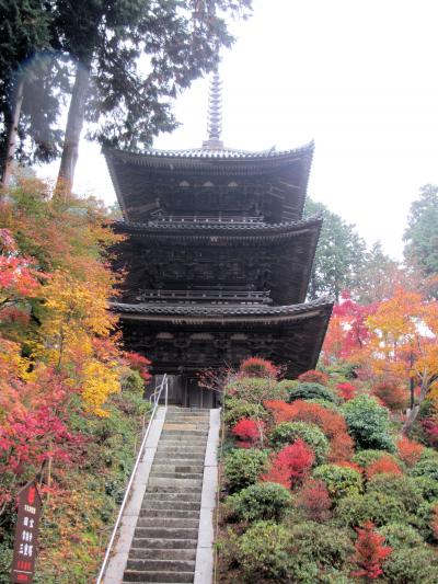 元々、滋賀には、紅葉で有名な龍應山「西明寺」、松峰山「金剛輪寺」、釈迦山「百済寺」の三山と 臨済宗永源寺派総本山「永源寺」をセットで湖東三山と言われていました。同じく紅葉で有名な湖南の3つのお寺をセットで湖南三山と称するようになりました。昨年(2012年)までは、紅葉の時期だけ周遊バスがありましたが、今年は運行しなくなりました。ただ、コミュニティーバスがありますので、時間を調整すればうまく廻ることができます。私は、レンタサイクルでまわりました。紅葉も、国宝の建物もすばらしかったです。