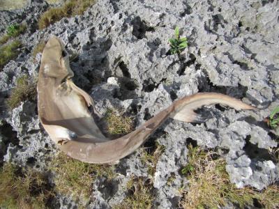 サメの子供の干物を発見 黒島灯台周辺は断崖絶壁ですが、干潮時には、海岸に降りることができました
