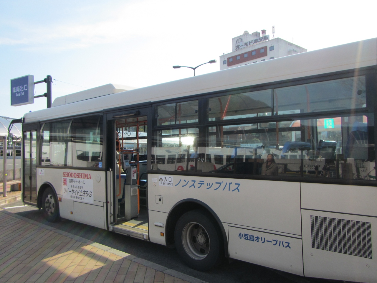 小豆島オリーブバスは、小豆島内の唯一と行っていいほどの公共交通機関です(町営バスもありますが、ごく一部に限られています)島の主な観光地と主要港を結んでいますが、基本は島民の足ですので、利用する前は、時刻表の確認が必要です。HPもあります。また、シーズン以外は、交通量も多くない島ですので、ダイヤも正確です。船の乗り継ぎがある場合は、乗車時に運転手さんに言いましょう。きっちり、考慮して戴けるので安心です。