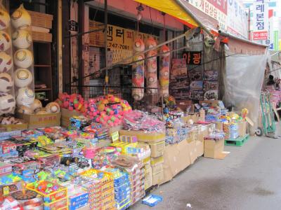 東大門から東に歩いたところにあります。車1台が通れる道の両側におもちゃと文具の店がすっと並んでいます。商品は、庶民的な物が多く、高級文具や洒落た文具、ゲーム機のような物はありません。私が行った時は、狭い道路に、くるまが1列にぎっしり駐車して、大変な事になってました。どう考えても、ずっと前の先頭の車から1台1台動かないと、どうしようもない状態でした。