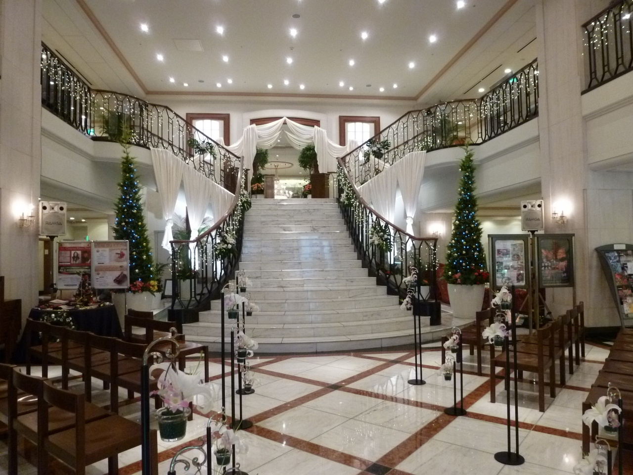 このホテルでの結婚式はロビーを利用するのでホテルの玄関すぐに素敵な