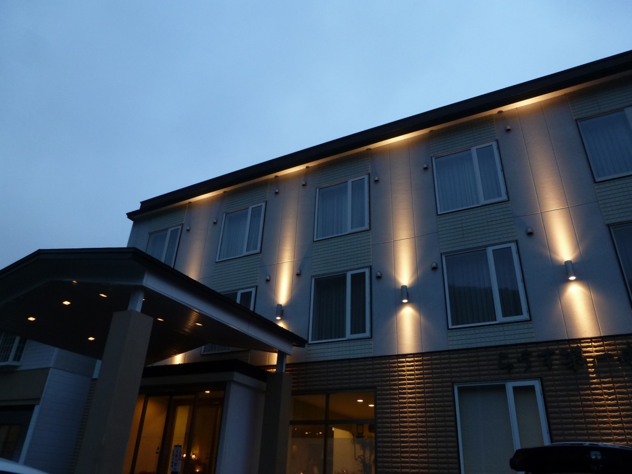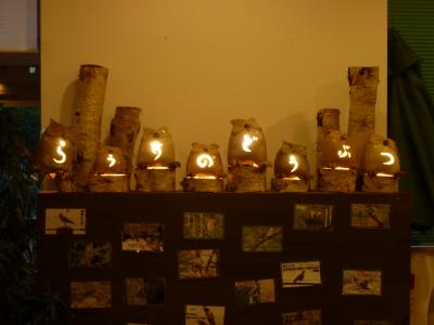 ふくろうの置物や灯りがたくさんあるアットホームな感じの宿です