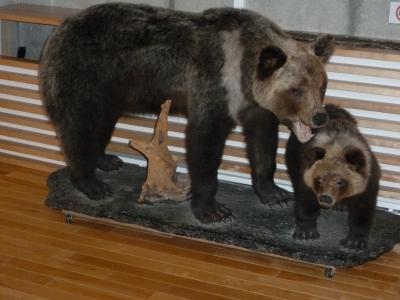 知床半島に生息するオジロワシやクマなどの剥製、そしてシャチの