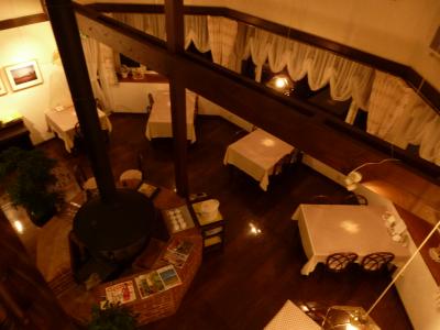 ペンションの中は吹き抜けになっていて、解放感たっぷりで寛げるスペースが