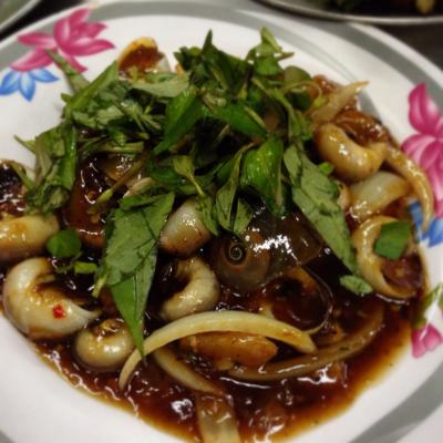貝のタマリンド炒め。甘ずっぱくてうまうま!葉っぱは、解毒作用があるとい...