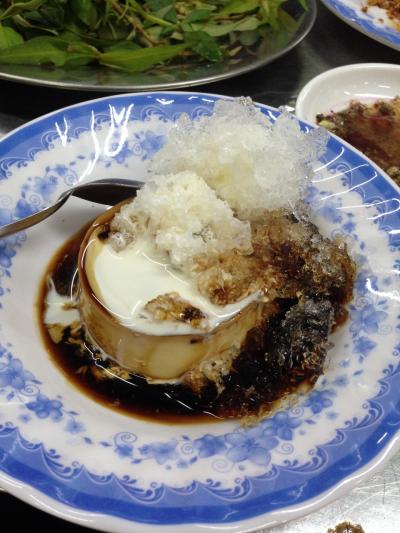 デザート。プリンにコーヒーと氷とクリームをかけてある。ベトナムのプリン...