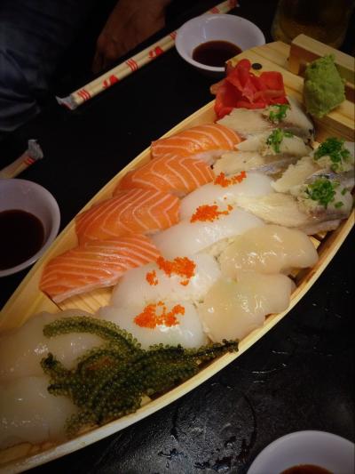 サーモン、ホタテ、イカ、しめさば、海ブドウ。けっこうおいしかった。→3...
