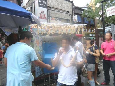 明洞に行ったらクリスピークリームドーナツへ。明洞ギル沿いにあるのですぐ目に入ってきます。甘~いものがお好きな人は外せません、甘い物がちょっと、、、という方はお勧めできませんが。並んでいてもオートメーションで出来上がってくるドーナツを眺めているとすぐに順番がきます。商品を受け取ったら2Fへ。街歩きに疲れた時はより利用しています。