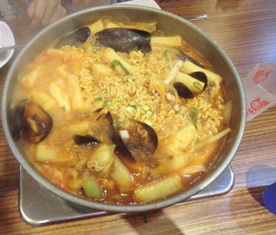 韓国のジャンクフード的なモッシドンナへ。注文は日本語表記の伝票に数を書き込みます。お皿やお水はセルフ。基本を選びそれにトッピングを追加する形です。途中で追加は出来ないので注文時によく考えてから。お腹一杯食べても一人500円ほどです。