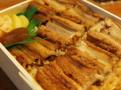 帰りの新幹線でふたを開けてびっくり。ご飯にびっしりとアナゴが敷き詰められていました。