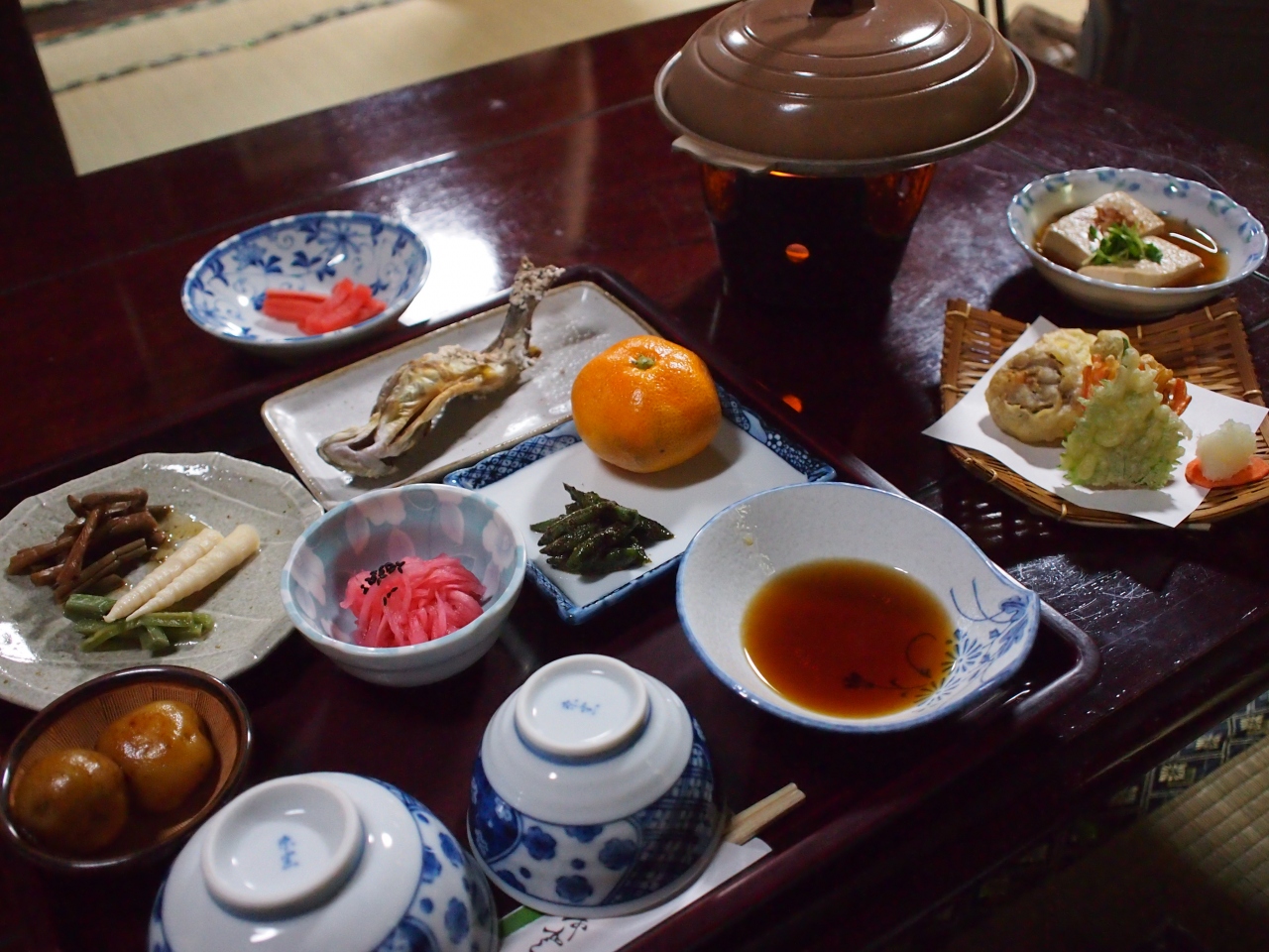 またお布団は起毛の敷布に毛布で暖かく、湯たんぽを入れてくれてあったのがうれしかったです。