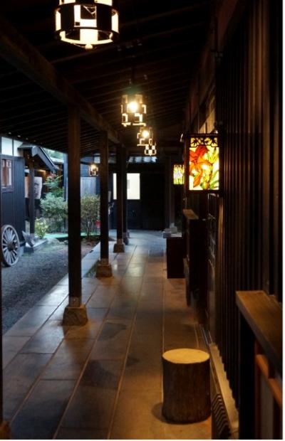 全8室のこじんまりした宿で、一部移築した古民家が使われ、内装や調度品には古建具、彫刻なども使ってあります。