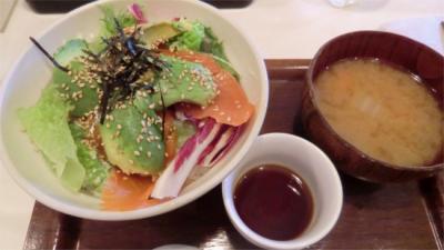 サーモンアボカドのどんぶりを食べましたが、鎌倉の野菜がたっぷり入っていました。