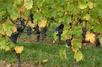 ここの葡萄畑は棚ではなく。ヨーロッパなどで見る、生垣タイプです。