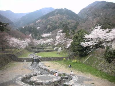 養老の滝に上がっていく入り口のところ。山の上のほうにも桜の木がぽつぽつ...