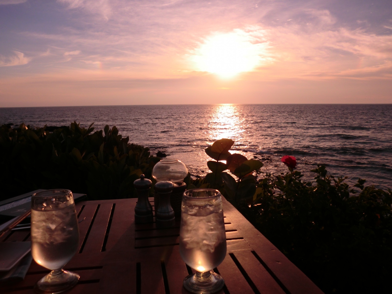 お店の正面に夕日が沈むのでテラス席ならどこの席からでも見えるかと思います。
