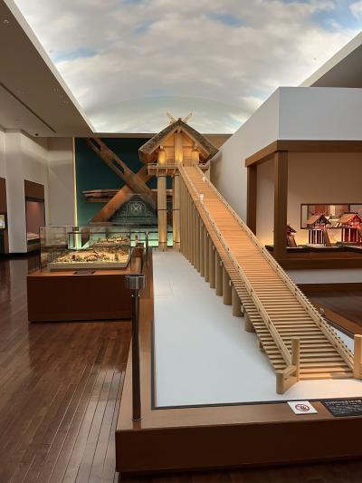 出雲大社の東隣。駐車場完備でこちらに車を停めたまま、参拝することも可能。高層建築だった出雲大社の模型や国宝の銅鐸、銅剣も展示されている。神話のビデオも定期的に上演されており見どころいっぱいである。残念なことにどれも時間がかかる。ビデオは1回あたり20分かかり、4編ある。オーディオガイドは全て聞くと2時間かかるそうだ。併設のカフェは臨時休業していた。ここでランチ等を予定するときには要注意。