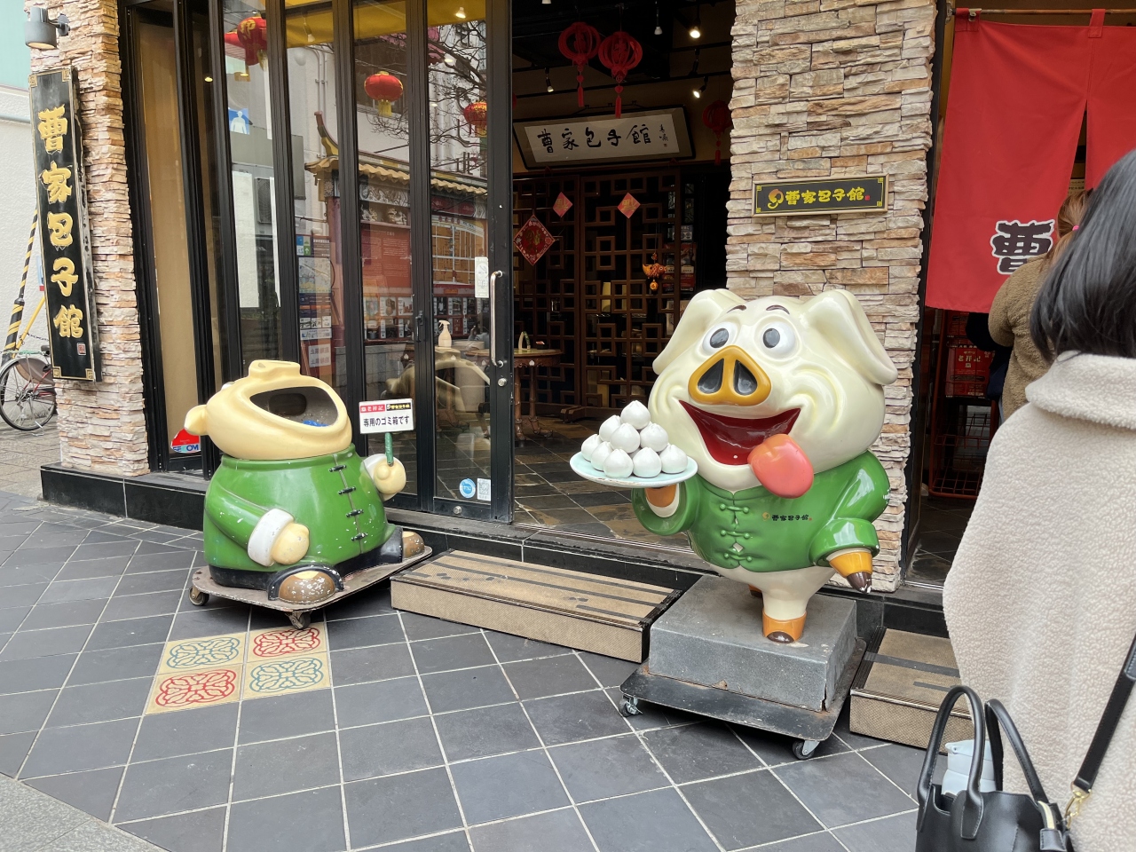 有名な豚饅頭のお店。今回行ったのが月曜日でお店の方はお休みだった。公園を挟んで迎えの曹家包子館で販売されていた。立て看板に1個100円とあったのでバラで買えるのか思ったら、6個か10個でしか売らないと言われた。一つが小ぶりなので6個買っても二人でペロリと食べられた。味はしっかり付いていて、熱々をその場で食べられて美味しかった。