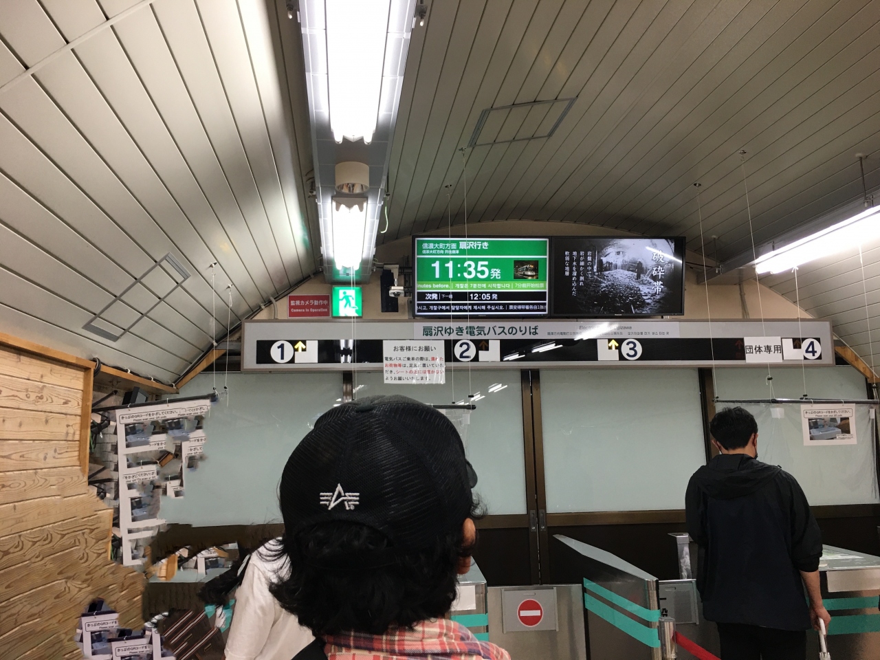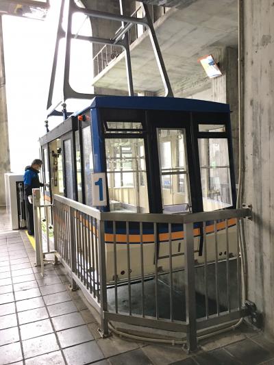 トロリーバスでトンネルを抜けるとこちらの駅に到着する。この日は風雨が強くて多くの人が先を急ぐ中、2階に上がって展望台へ寄ってみた。案の定ガスでほとんど見えなかった。天候に恵まれれば、さぞかし絶景が見えた事だろう。残念である。