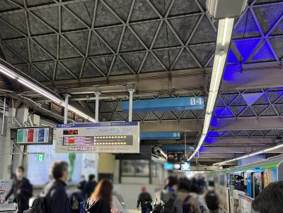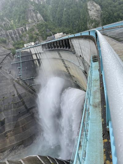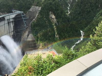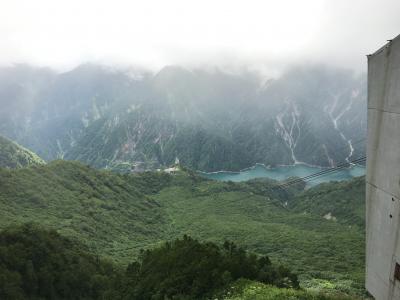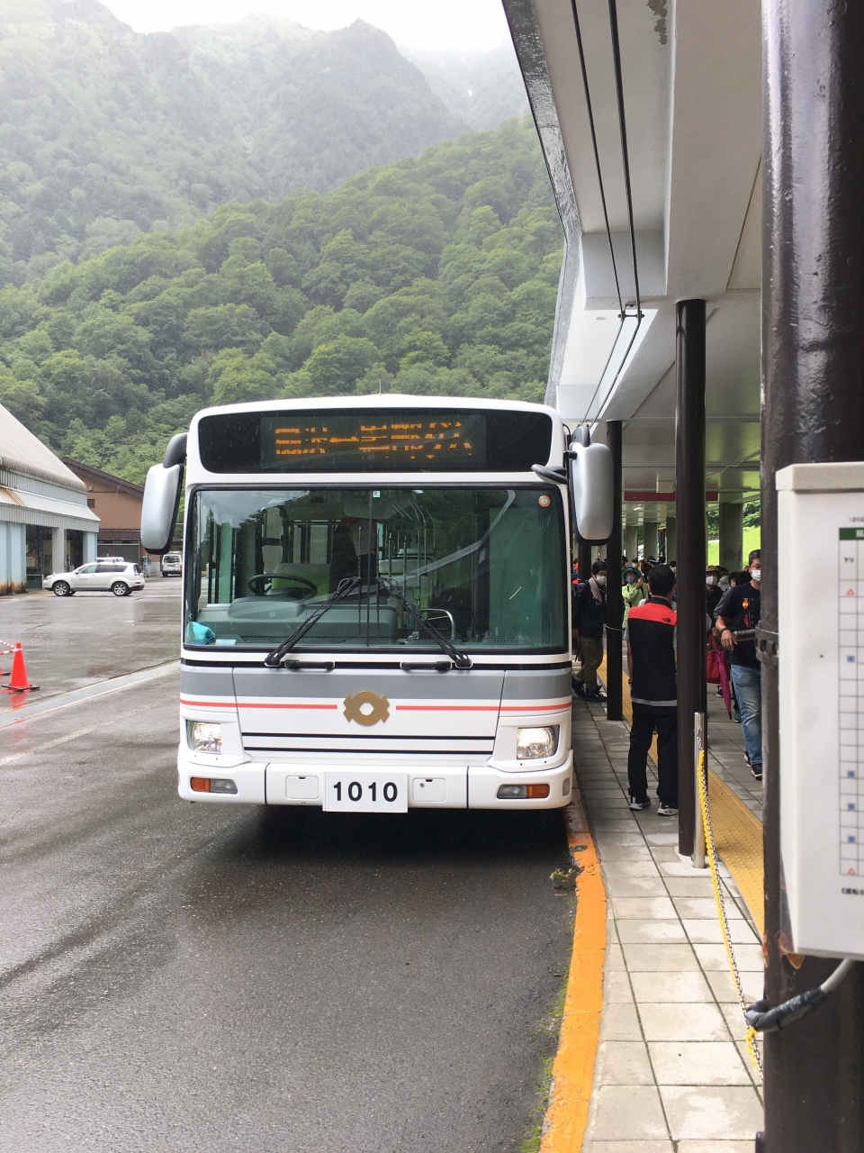 立山黒部アルペンルートの最後の乗り物。黒部ダムから扇沢へ抜けて行く。ほとんどがトンネル区間で途中、大破砕帯を通る。青い電灯でその区間が表示されている。乗り場には発車10分前くらいから並び始める。4台同時に発車した。それでも座席に座れず、立っている人も結構いた。