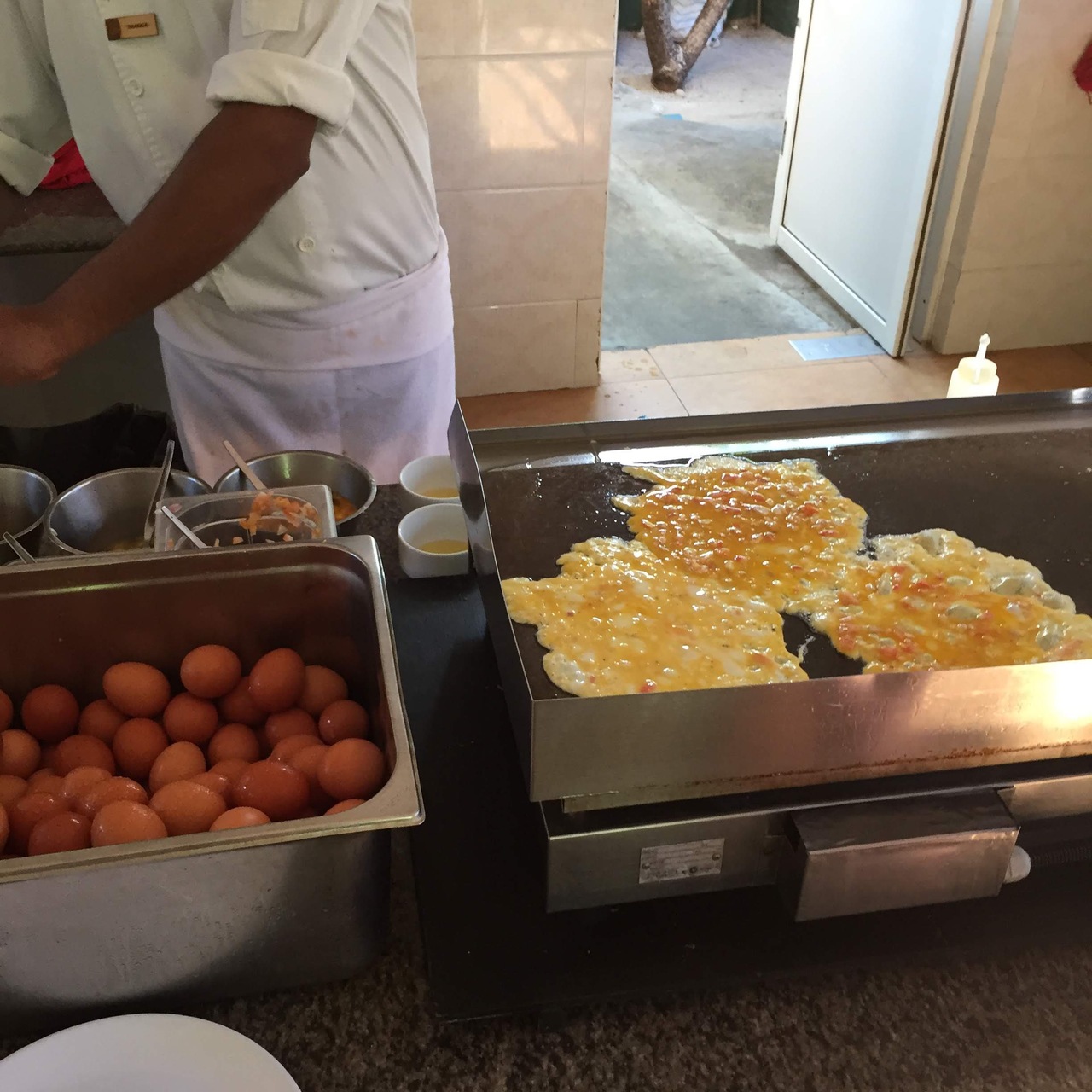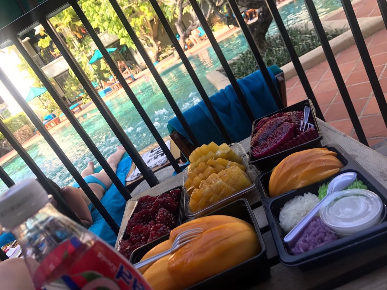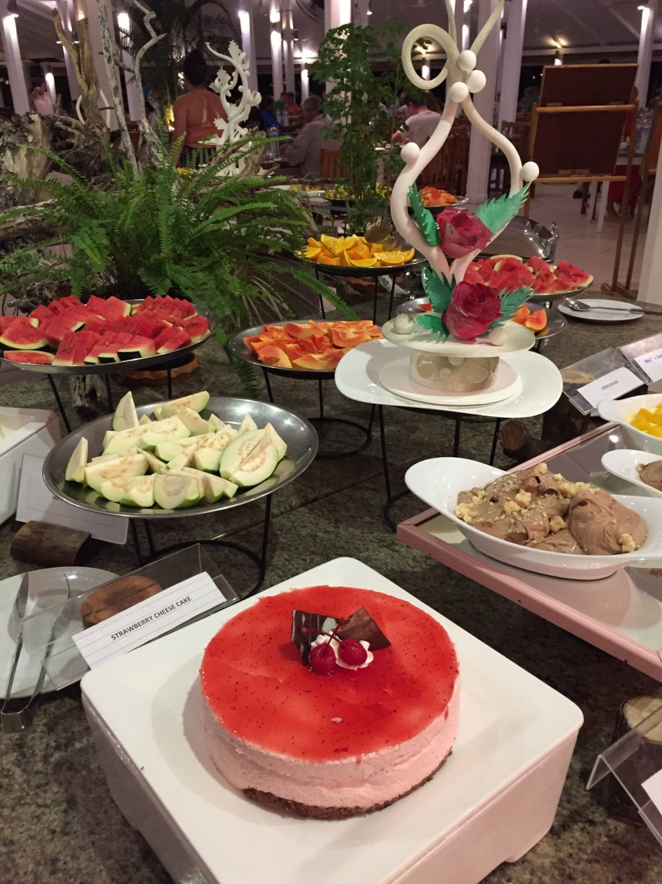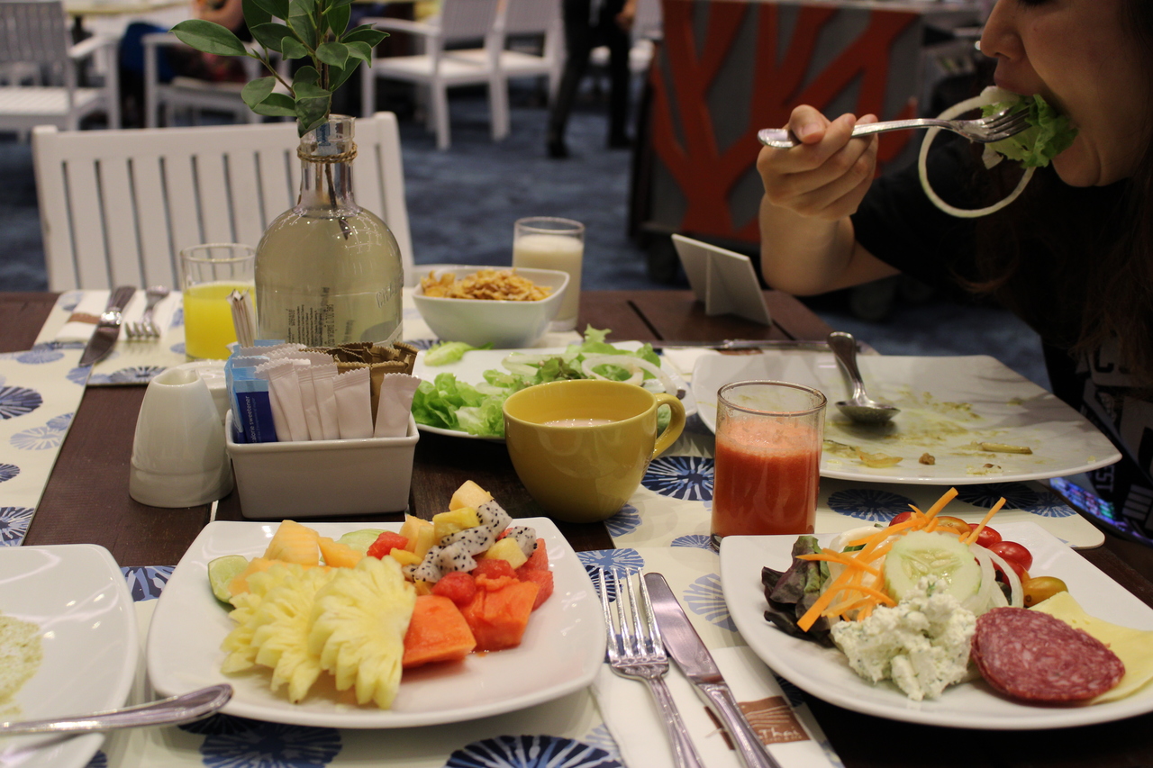 ④食事は種類は豊富ですよ。1つくらいは口に合うものがあるかもしれません。フルーツとスイーツは三食とも沢山ありました。飲み物は朝のみジュースとミルク提供あり。それ以外は有料ですがリーズナブルです。水1.5リットル3ドル、ソフトドリンク3ドル。ラグジュアリーな島じゃこうはいきませんよ!