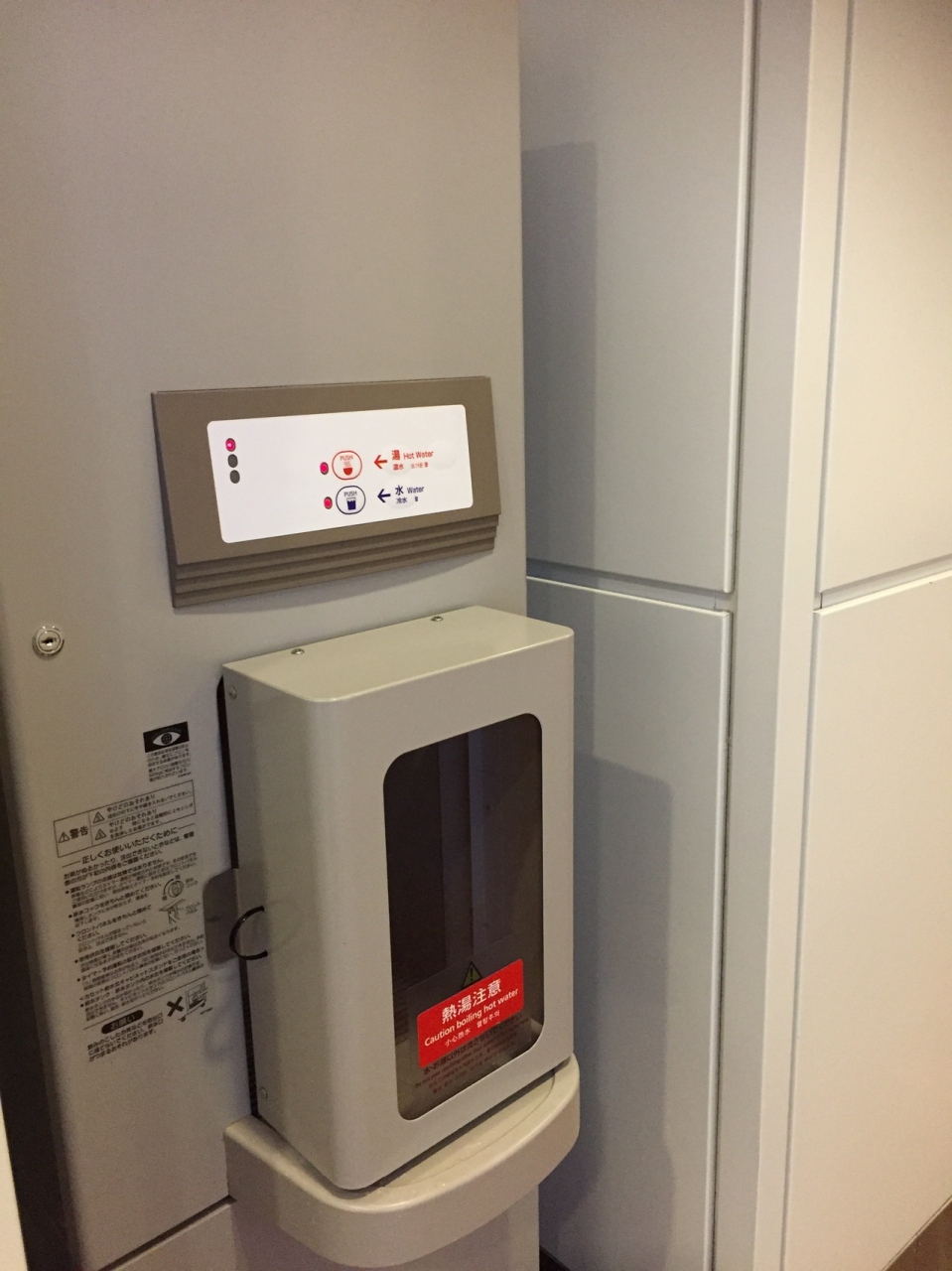 最初からあったのかしら?昨日気がついた。続々と茶漉し付きボトルを持参している中国人と思しき観光客が給湯してました。だれも居なくなった隙にパシャり。水も出ますな。