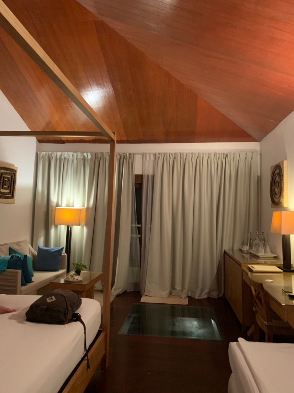 シーツ、タオル交換は朝に一回あり、夕食時にターンダウンと言ってもシーツを整える程度。お水は人数分大きな瓶であります。湯沸かし器もありました。WiFiのパスワードをチェックイン時にもらえます。弱くて安定しないけど、日本で借りたWiFiより役に立ちました。