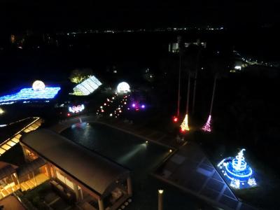お風呂は地下にありますが、そこに向かう途中にイルミネーションガーデンに出れる出入り口があります。これがなかなかキレイ!気軽に楽しめるのがいいですね。娘も声をあげて喜んでいました。