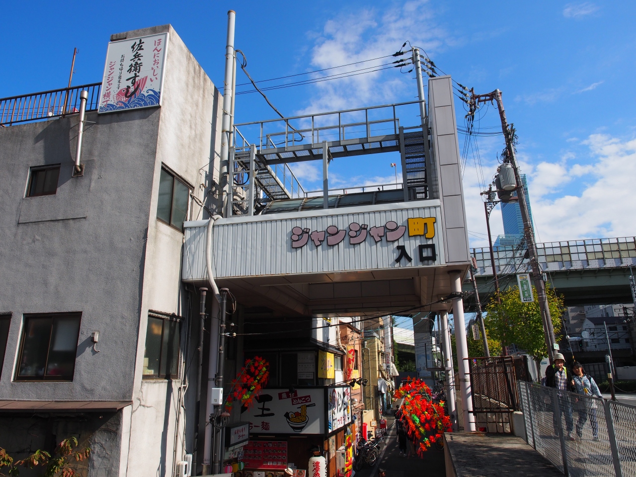 通天閣のほど近くにあるアーケード街です。道幅がかなり細くて、まっすぐ歩くのが困難なほど。そんな中、自転車で配達をしている地元の人・・・凄すぎる・・・。