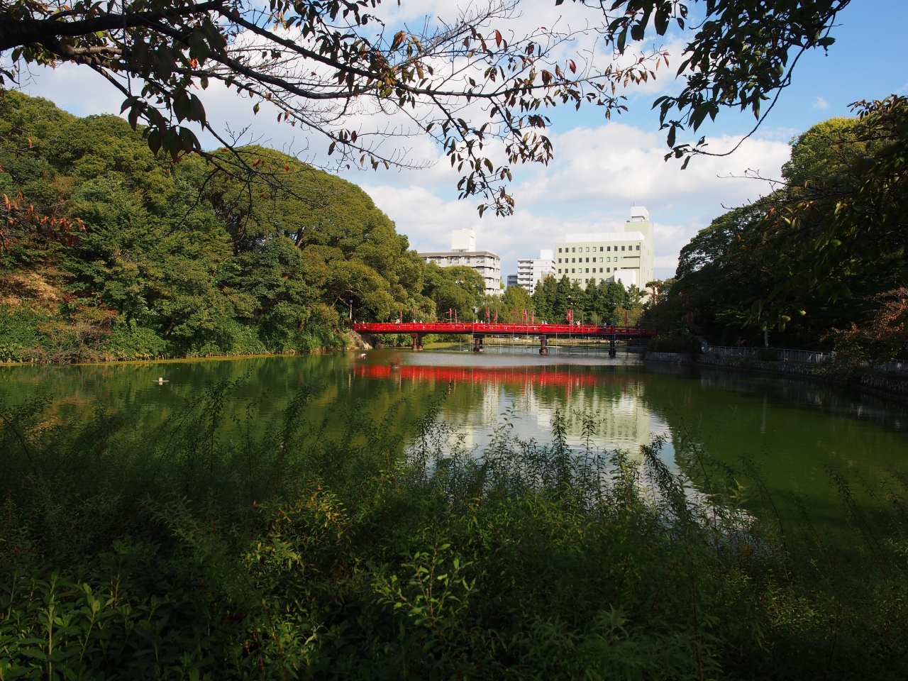 赤い色が、緑の豊かな公園と池の水面に映えてとても綺麗でした。