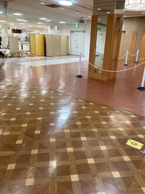 甲府市を訪問した時に、空き時間が少しできたので立ち寄りました。建物の外観も内観もかなり古い感じがする建物です。上階の催事場でやっているフェアに行ってみましたが、がらんとした催事場の一部でローカルな雰囲気でやっていて(写真は催事場フロア)印象的でした。