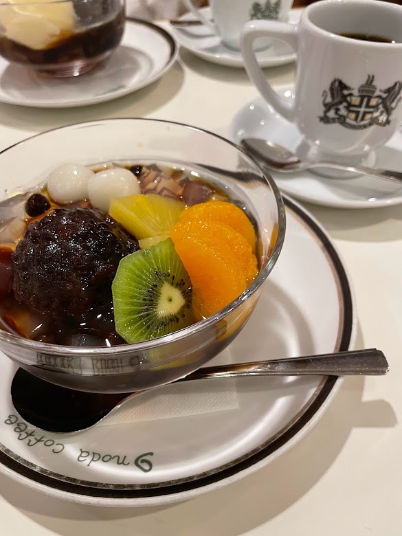 阪急電鉄烏丸駅に地下で直結している便利な立地にあります。閉店まで1時間ちょっと、という時間帯に行ったのでそれほど混んでおらず、ゆったりすることができました。喫茶店ですが、店内から見える厨房は広くて人も多く、本格的。今回は甘味とコーヒーにしましたが、お食事もおいしそうでした。