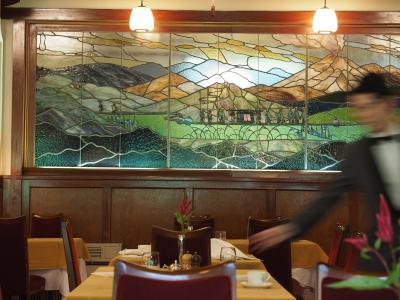 軽井沢の新旧の風景を描いた大きなステンドグラスに格天井といった、和と洋を組み合わせたインテリアが他にはない見ごたえでした。お料理ももちろんおいしいのですが、どんな料理よりもこの場所の雰囲気と、あたたかいおもてなしのサービスが一番印象的でした。- 旅行時期