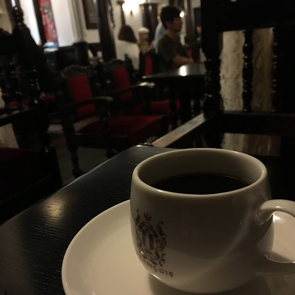 古いレトロな雰囲気の建物を利用した喫茶室です。ガイドブックには必ず載っている有名店です。喫茶店にしては遅い時間までやっているので、夕食後のコーヒーを飲みに立ち寄ったところ、それほど混んでおらず、すんなり入店できました。ステンドグラスや柱の装飾など、建物自体に見どころがあるお店です。