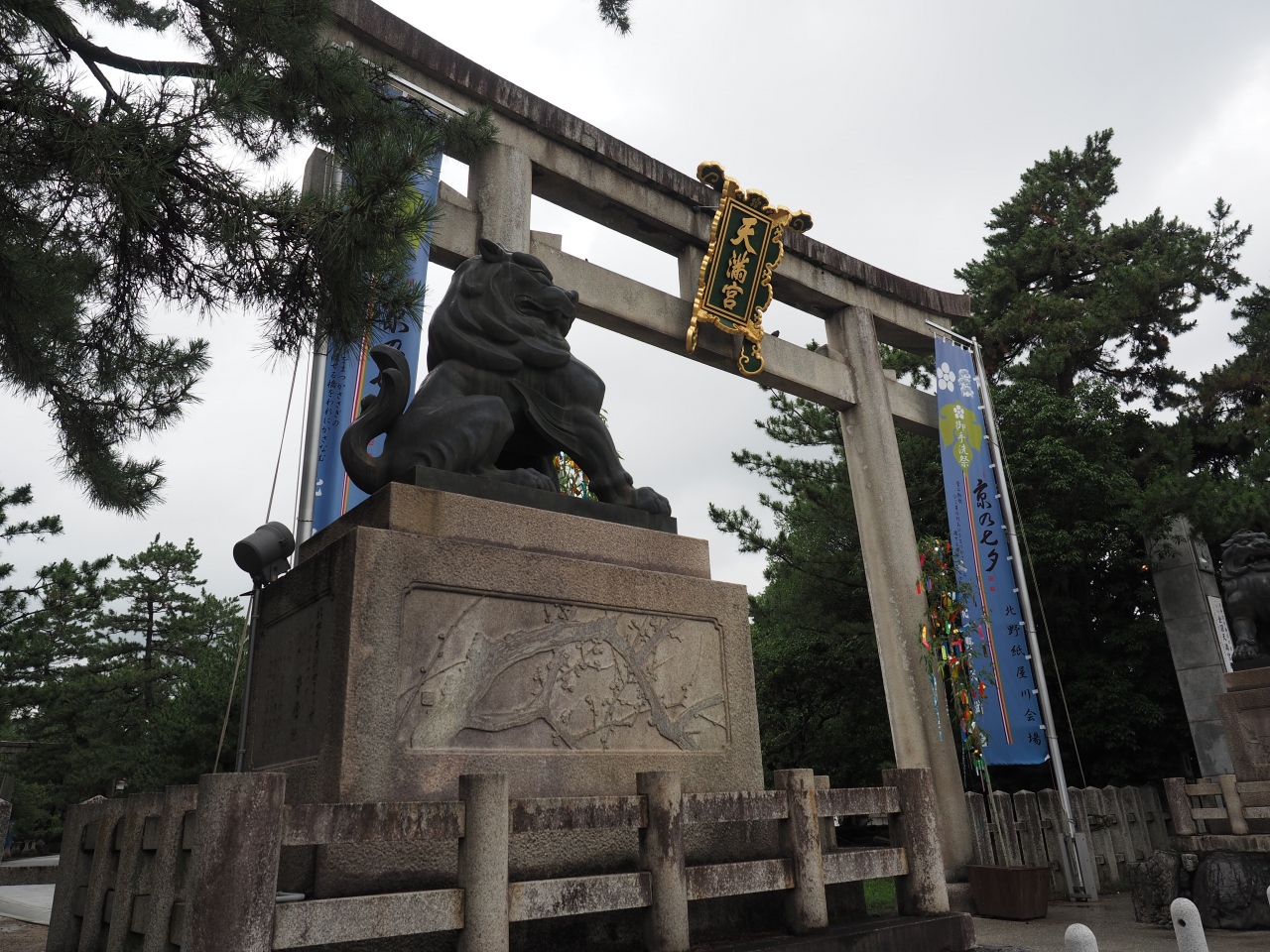 北野天満宮の南側にある大きな石造りの鳥居です。交通量の多い今出川通沿いにあり、とても立派なので非常に目立ちます。まっすぐ本殿まで続く道が通っており、この鳥居をくぐると神域に入った、という気持ちになります。