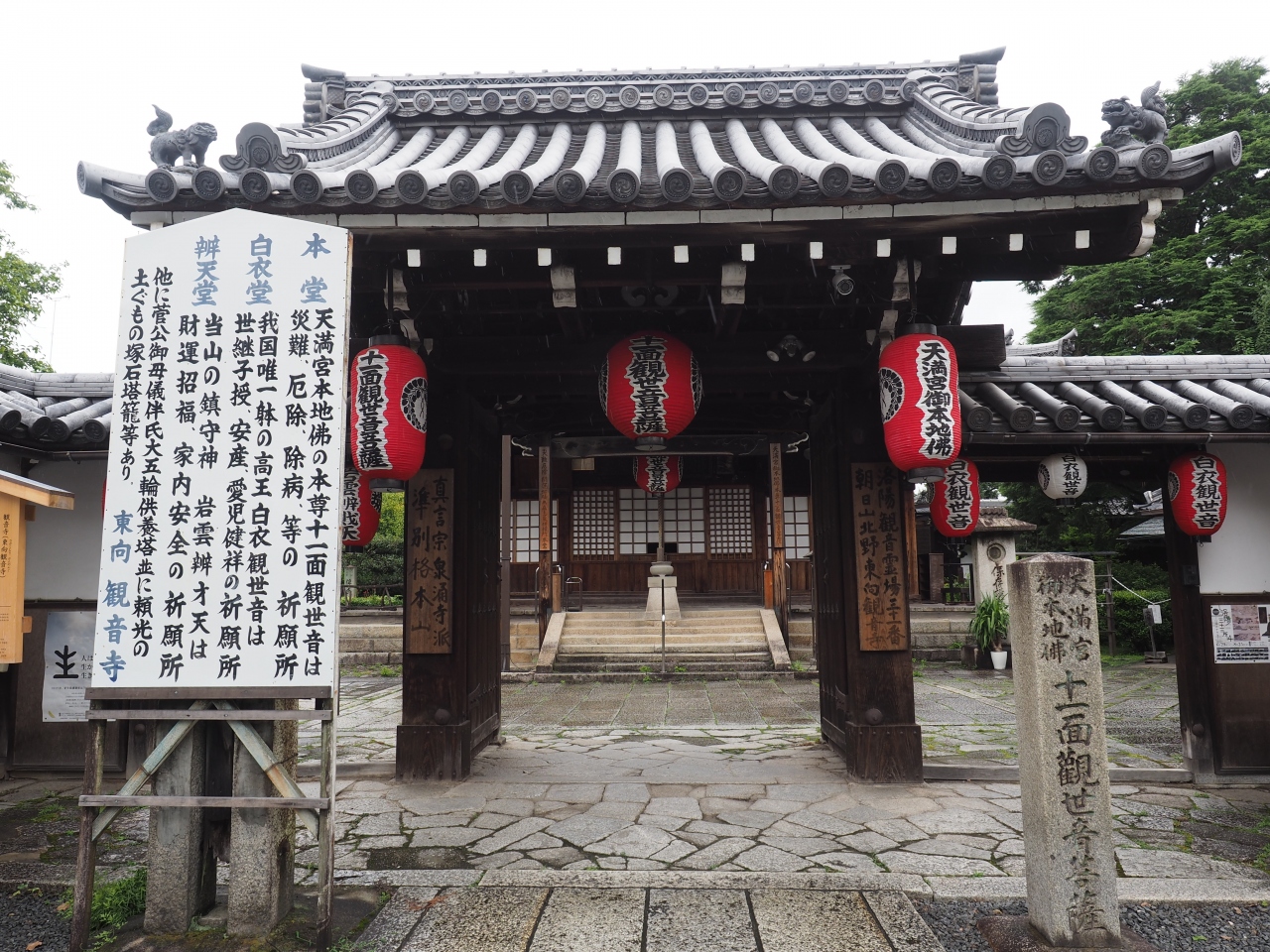 北野天満宮の一の鳥居をくぐって少し歩いた先の左手側にある、小ぶりなお寺です。赤い提灯が目立っていたので、天満宮にお参りする前に立ち寄りました。洛陽三十三所観音第31番札所であり、本尊は菅原道真の自作なのだそうですが、残念ながら本尊は見られませんでした。