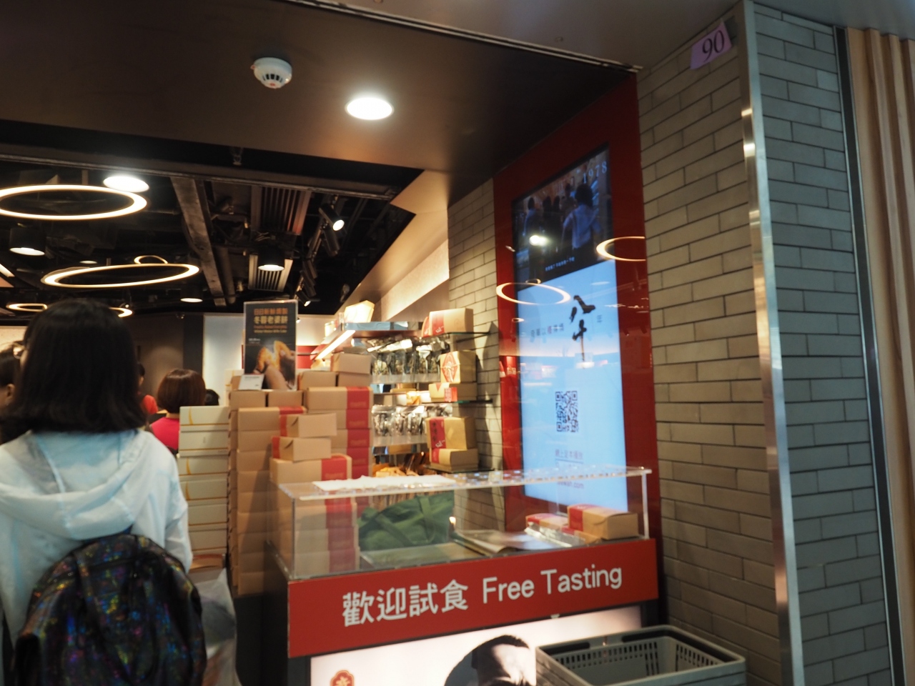 香港空港内で行列ができている人気の菓子店です。みんなかなりの数を大量買いしていきますが、レジの女性が手早くて、それほど並ばずに会計ができました。アーモンドクッキーとごまの焼き菓子などを購入。