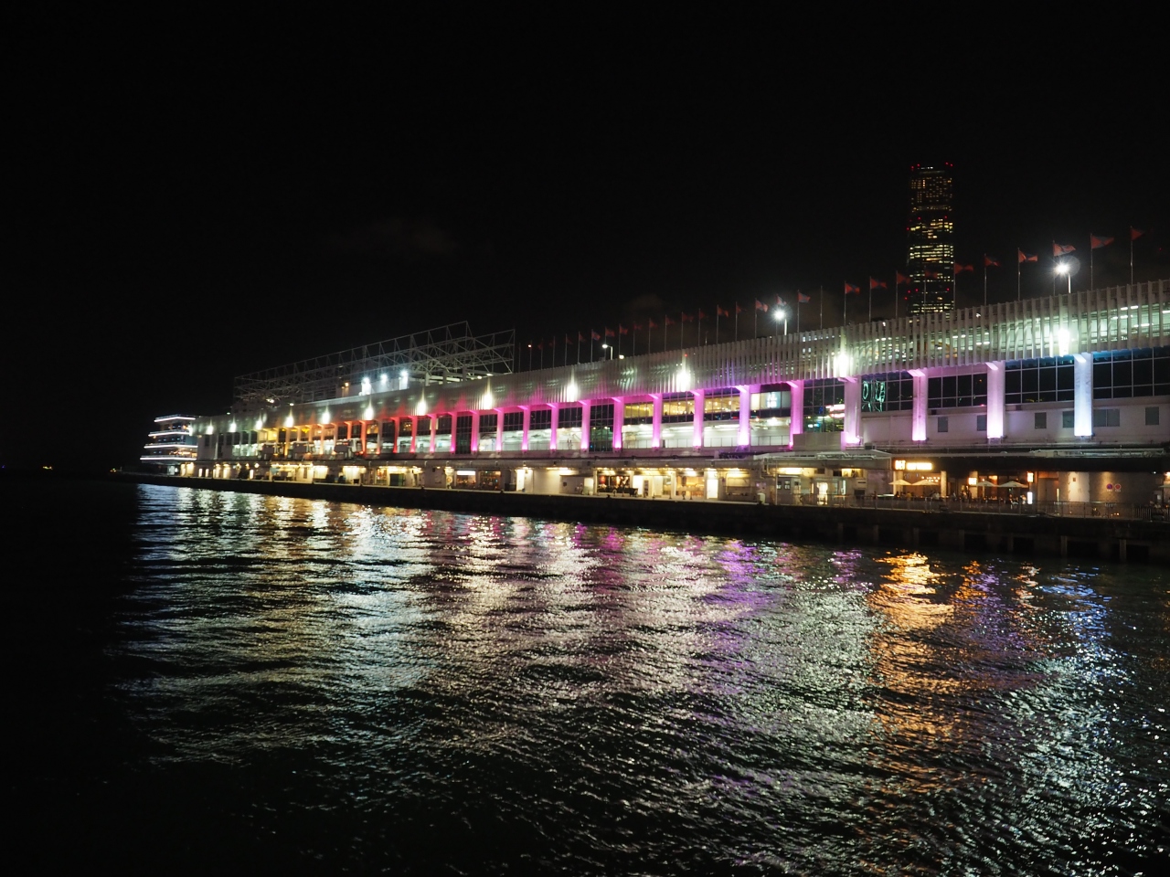 ヴィクトリア湾に面した九龍半島の突端にある商業施設です。アクセスがしやすく、観光の途中に立ち寄りやすい立地で、夜はここからの夜景も素晴らしいです。この建物自体もライトアップされます。レストランやスーパーなど多数のお店が入っていて、遅い時間でも人がたくさんいました。