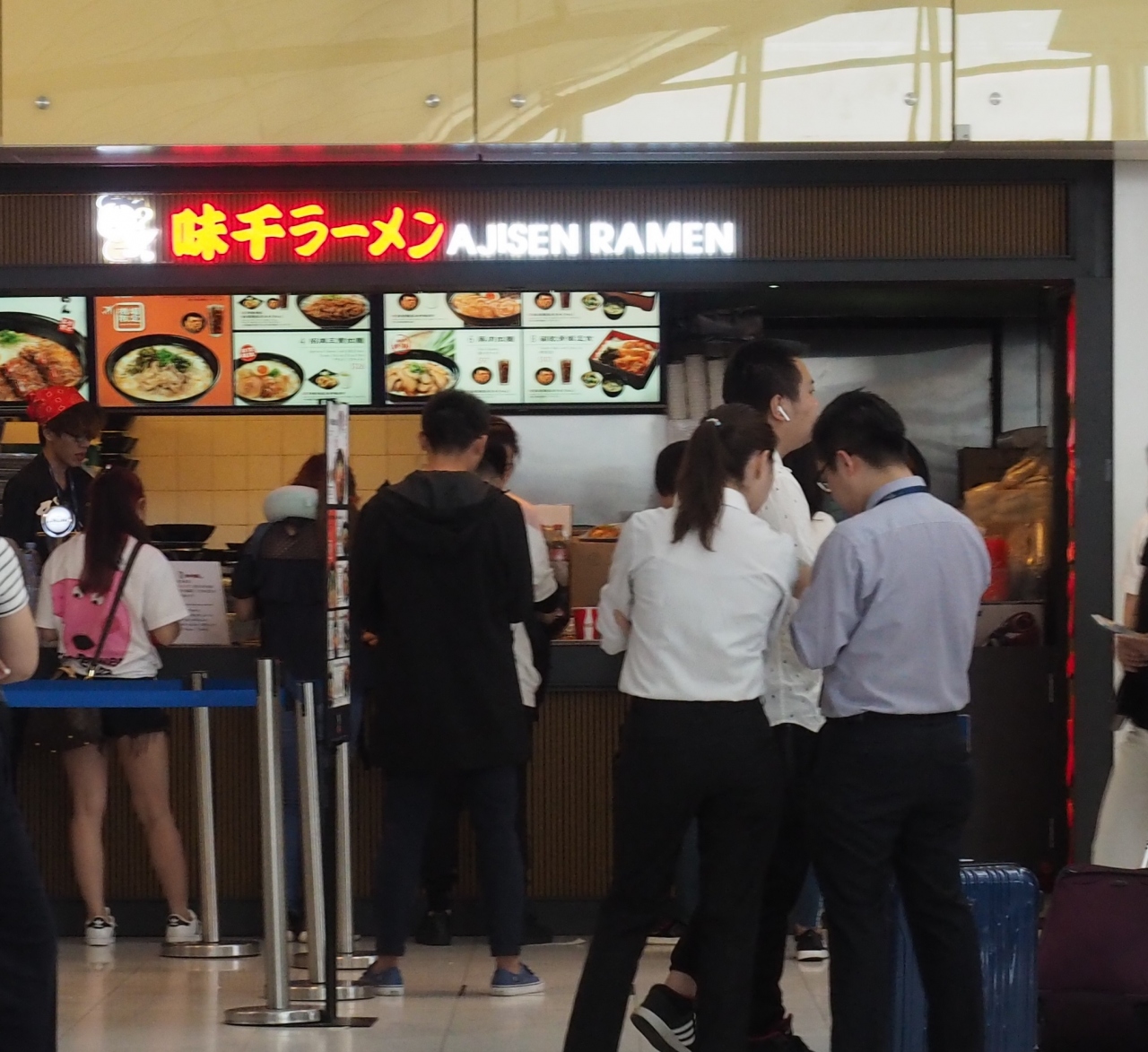 香港国際空港内にあるラーメン店(ラーメン以外もありますが)です。フードコートのあるフロアにあるため、まず席を確保してから買いに行ったほうがいいです。人気店なのか中途半端な時間帯だったにも関わらず行列ができていました。空港内のお店なので、あまり期待しすぎないほうがよいです。