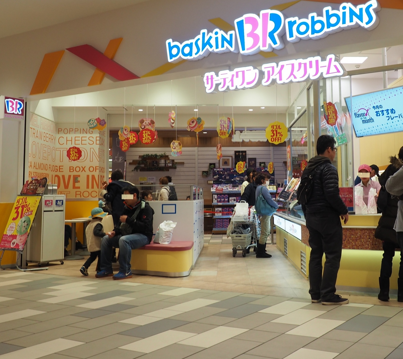 みなとみらい駅に直結しているマークイズの4階にあるフードコート内にあるアイスクリームショップです。カウンターが横に長く広いので、アイスクリームの種類が見やすいです。ただ、さすがに寒い時期のためかお客さんはあまりいませんでした。