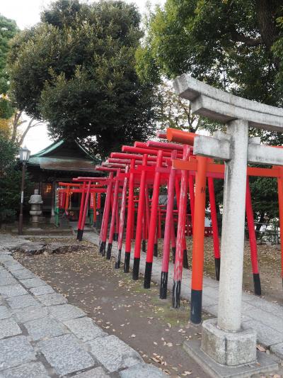 品川神社の境内の中、本殿に向かって右手方向にあります。小さいながらたくさんの赤い鳥居が連なっていて、雰囲気がありました。