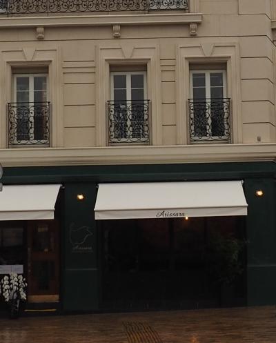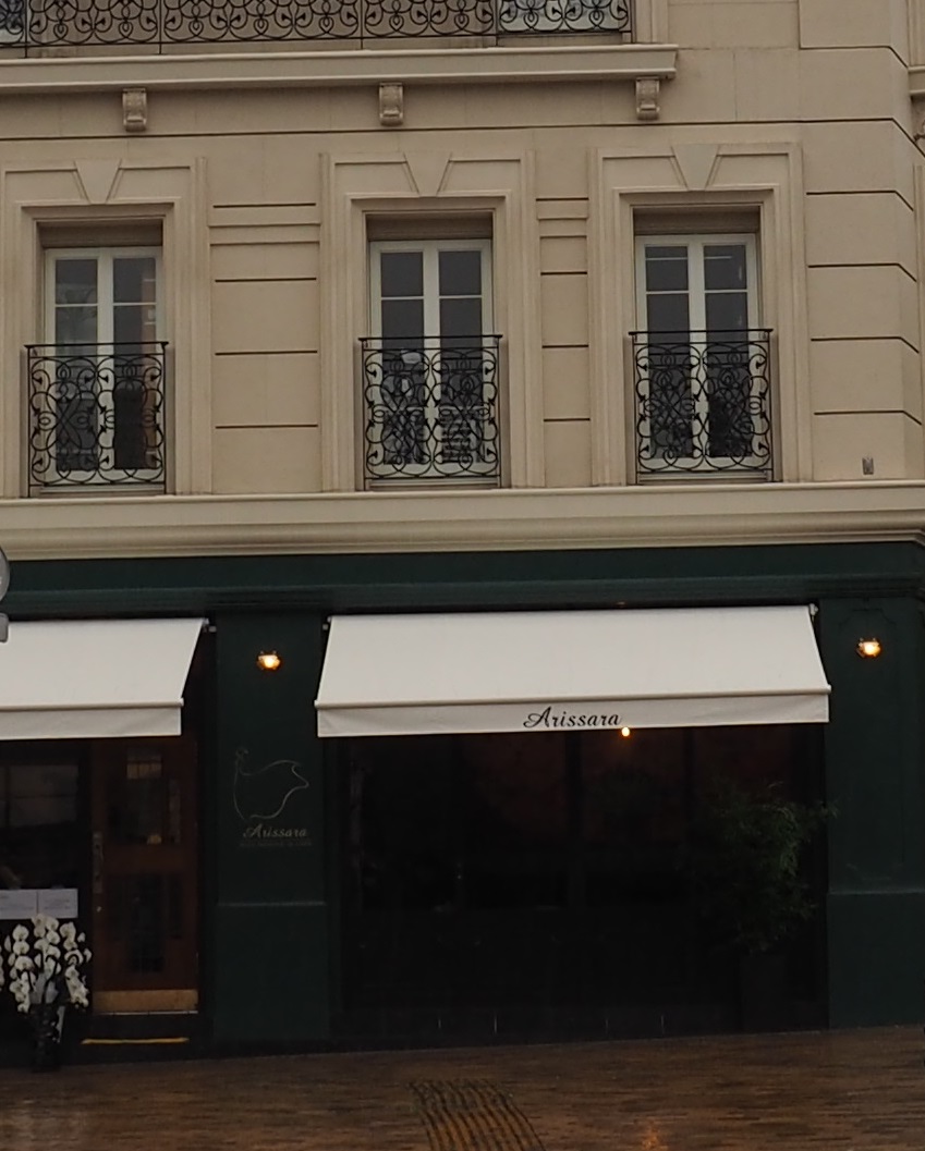 播磨坂下のちょうど鋭角になっている角の部分に新しくできたカフェ&ベーカリーショップです。ダークグリーンの壁と白いひさしのコントラストがおしゃれな雰囲気です。最近オープンしたばかりみたいで、店頭にはお祝いの花がまだ並んでいました。