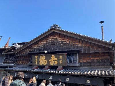 おかげ横丁のなかにある古い酒屋さんです。店の前で、甘酒と粕汁を売っていました。風が冷たい日だったので、甘酒を注文。紙コップ1杯で200円。しょうがを入れるかどうかを聞いてくれます。さすが酒屋の甘酒で、すごくおいしかったです。